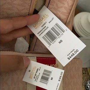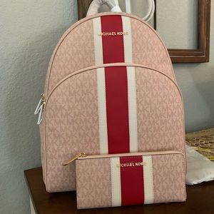 3" top handle & long adjustable back pack straps Michael Kors Abbey Large Backpack Brown MK Signature