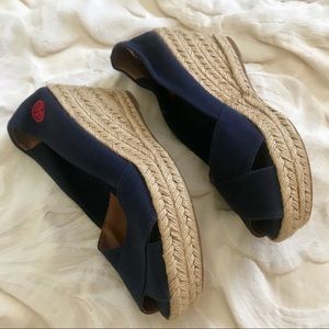 “SOLD” Tory Burch Navy Blue Espadrille Wedges