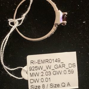 Sterling Silver 925 3/5 Carat Garnet & Diamonds Ring. Metal Weight: 2.03. Genuine Diamond. Quantity: 2. Cut: Round. Clarity: SI1-I2. Color: G-1. Stone Size: 0.9mm. Stone Carat: 0.01. Genuine Garnet: Quantity: 1. Cut: Round. Clarity: Very Good. Color: Persian Red. Stone Size: 5mm. Stone Carat: 0.59.