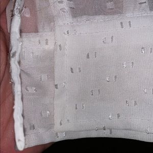 Sheer ivory shirt. Button down. Tiny mark on back hem (pic attached). Barely worn. Missing one button on cuff (pic attached).