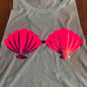 Light blue with mermaid shell design. NWOT. Note the fit in photos. Open back.