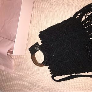 Brand new stylish crochet body bag with long strap for cross body bag and beautiful wooden handles lots of room perfect for beach trips running around town and other activities during the summer time brand new with tags never used by Danielle Nicole