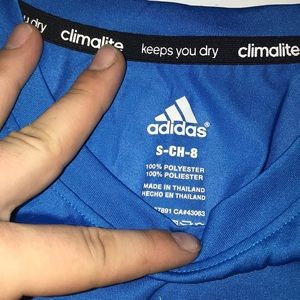 Little boys Adidas T-shirt size youth small. Blue with green vinyl.