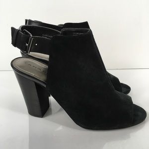 Tahari Margaret Black Suede Open Toe Shootie 8.5