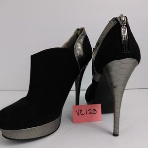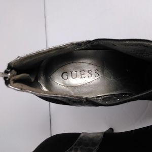 Guess Black faux suede and silver platform heel stilettos, size 7.5