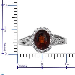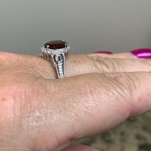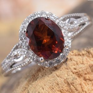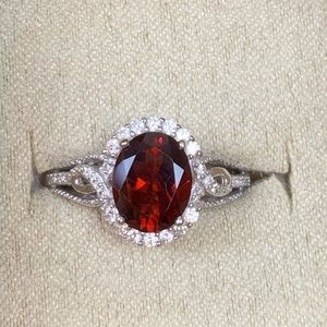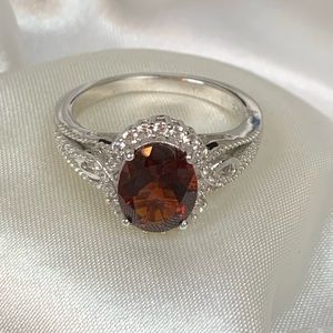 ♥️Genuine Red Citrine and Cambodian White Zircon* Ring. Center Stone is 10 x 8 Oval and 2.3 Carats. Set in Platinum over .925 Sterling Silver. TGW 2.72 carats. Size 9. Comes New in Box for Safekeeping and Gift 🎁 Giving♥️