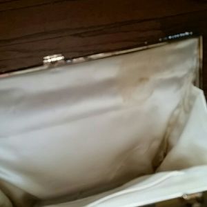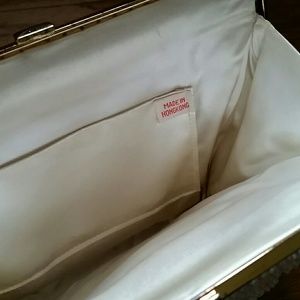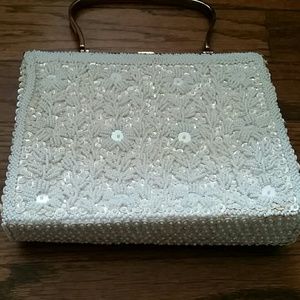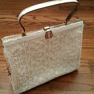 Vintage Beaded Purse with Metal Mother of Pearl Inlay Handle