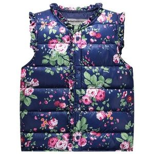 New Girls Navy Ruffled Autumn Winter Puffer Vest