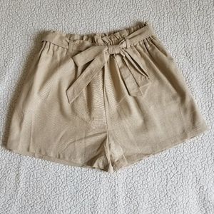 Waist-tie linen paperbag shorts.