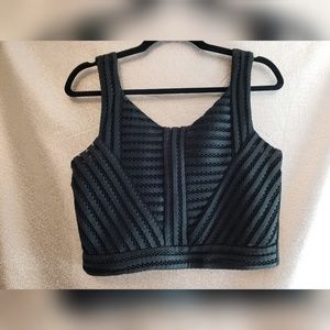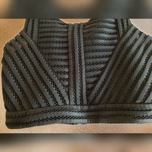 Pre Owned in excellent condition, only worn once or twice. This is from the brand TFNC and is a size small. Such a beautiful textured crop top, its simply a little too cropped then I prefer.