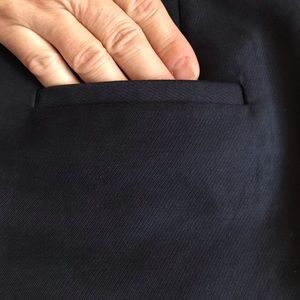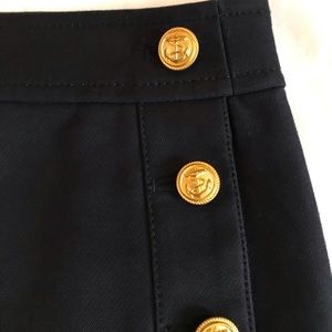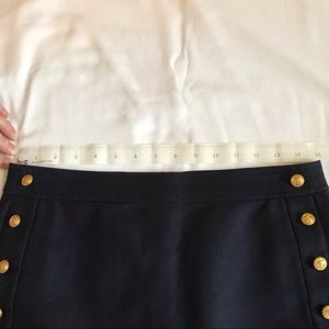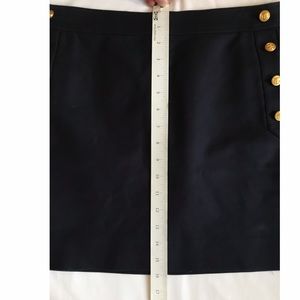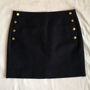 Navy skirt with gold anchor buttons and pockets from J. Crew. Spacious front pockets and shallow back pockets. Fully lined skirt.