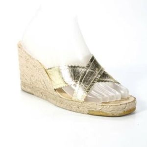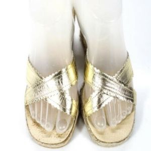 KORS MICHAEL KORS GOLD METALLIC OPEN TOE HIGH WEDGE HEELS SIZE 8