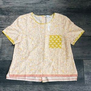 Madewell Woman’s Button-Back Pocket Top in Jaipur Floral. Your new wear-anywhere-and-everywhere shirt in a floral inspired by Indian woodblock prints. Pocket in the front, buttons in the back—leave a few undone to feel a little more summer on your skin.Regular fit. Body length: 22 1/4". Cotton/viscose. Excellent conditions. Brand new with tag