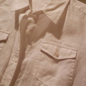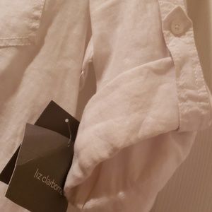 Liz Claiborne NWT LARGE linen blouse in white, roll up sleeves, button front