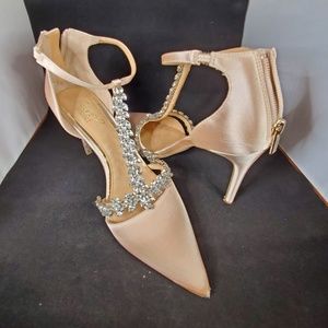 Badgley Mischka Meena Crystal Embellished T-Strap Pump.