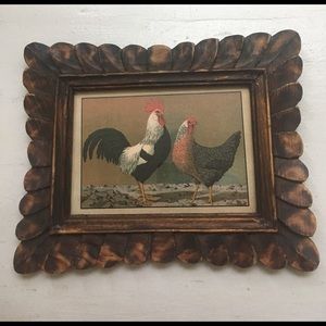 hand carved, wooden framed artwork. If you love roosters and chickens, you will love these incredible piece of fine art.