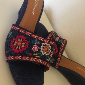 Super cute for summer! These are floral embroidered sandals. Size 7.5