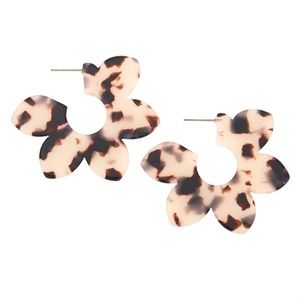 Get the best of both worlds rocking this pair of earrings with a unique 2 in 1 look! These hoop earrings feature the oh so trendy tortoiseshell pattern in the shape of beautiful flowers.