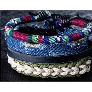 Men's Denim & Woven Bracelet Set