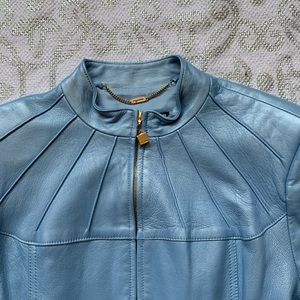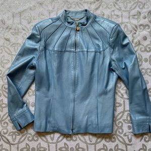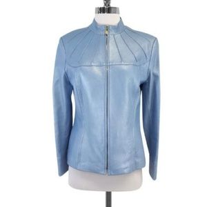St. John Sport Blue Leather Zip Front Jacket