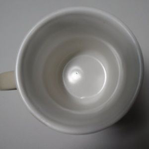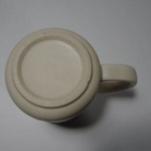 In very good used condition with light wear/use. A small defect on the rim of the cup that occurred during manufacturing process (seems like a chip that has been glazed over). Light residue/staining on bottom rim. No