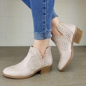Dusty Rose Perforated Cut Ankle Booties- B1