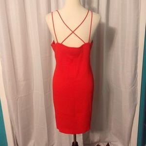 Beautiful stretchy dress from H&M. Double Spaghetti strap with Criss cross back. Ribbed texture. Size 12. Armpit to armpit is 18", waist is 18 1/2", armpit to hem is 26". Color is between a pink and red. Excellent used condition with no flaws. *3