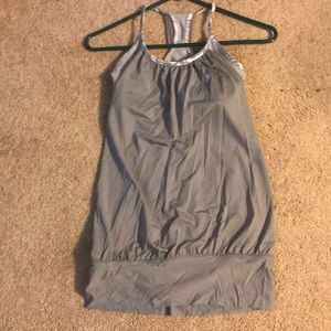 Gray bra top tank from lulu. The sports bra is gray and white striped and the straps are floral. The tank is in beautiful condition. Only worn a handful of times.