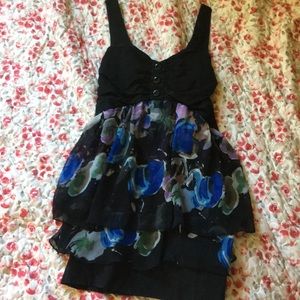 This dress has multi colored layers of sheer fabric and buttons on the top and you can even make the straps tighter or looser with the buttons for the straps