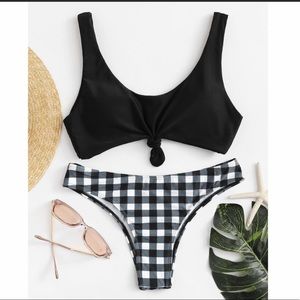✂️ NEW Tie Crop Tank Cheeky Gingham Bottoms Black