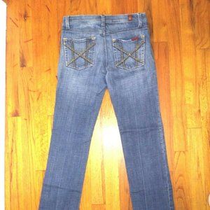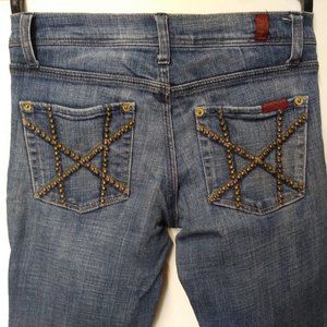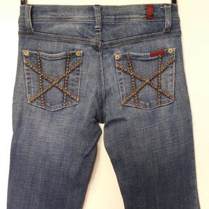 7 FOR ALL MANKIND womens Bootcut Dojo jeans 29 x 30 Sz 25 Embellished Back Pockets. Whiskered look.