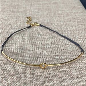 Stella & Dot thin gold and black leather choker. Very dainty and stylish. Gold section is 5” and the leather sections are 4” on each side. By approximately 1/8”. There is a 2” extension. Gently used but not abused.