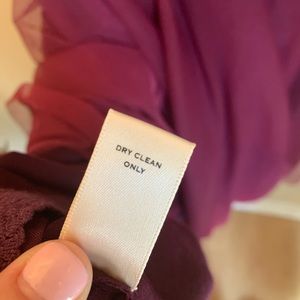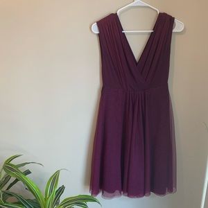 This romantic, feminine dress features v-neck, ballet-style tulle skirt, and beautiful deep purple/wine color. Wear for date night or other special occasion. Would look great with some strappy black heels.
