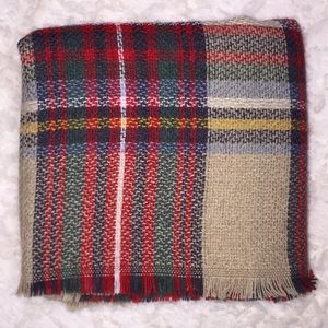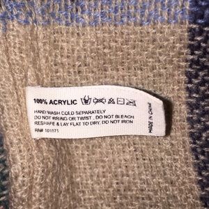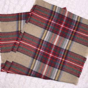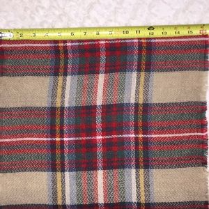 This plaid scarf is made of 100% acrylic. It is in great preowned condition. Please note there’s two tiny snags if you looks closely (see last photo)