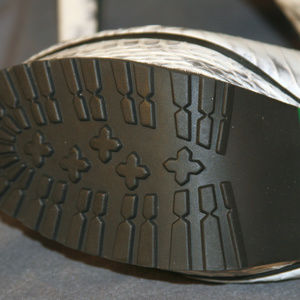 like-new, mint condition, size 9.5. 5-inch heel, 1.5-inch platform, with rounded toe. Contrasting green finish on the underside, with lug-grip sole. Very unique! Comes with Pliner dust-bag; no box. These will turn heads everywhere you go!