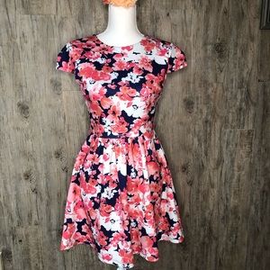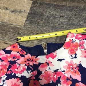 Floral short sleeve stretchy dress. See through in the back and zips up the back. Higher quality material and super comfy.