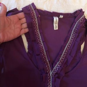 Gorgeous silk top in purple. This top is absolutely gorgeous Pre-Loved. Worn once. In mint to excellent condition. Like new. Purple silk sleeveless blouse. V Neck. Beautiful grommets details on cap sleeve and chest. High low hem. Measurements in pictures. Looks great with skinny faux Vegan leggings. A pair of Jeans, heels, even a nice bootie to add a little dash of fabulousness ✨✨