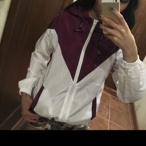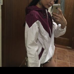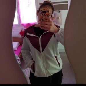 New in package Burgundy & White Sports Athletic Windbreaker Jacket. This polyester, unlined, lightweight jacket is trendy & sporty at the same time! Manufactures size chart is included, along with previous customers purchase pictures. This jacket has a 5 star rating, and based on customer feedback runs true to size overall, without stretch. If you have a larger bust & shoulders or are between sizes, it is best recommend to size up. Comes from a smoke free home. Bundle with other items to save!