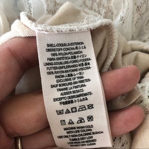Free people Thalia textured lace romper in a slightly off white/cream color with nude color lining and a cute back detailing. Great for summer!
