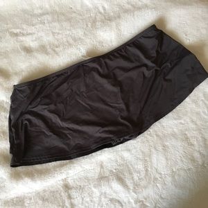 These are a charcoal grey color, and in great condition. The bikini bottom is attached to a skirt for some extra coverage.