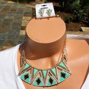 NEW Boho Tribal Bib Turquoise & Gold Necklace Set