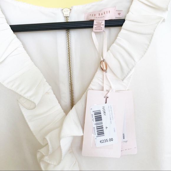 Ted Baker London Ivory Ruffle V-neck Skater Dress