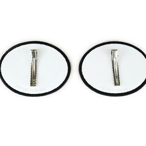 An up-trending shoe accessory of an embroidered patch on vegan leather that clips onto laces or slip-ons.