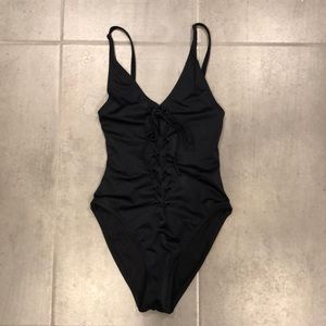 One piece shoelace swimsuit. Removed from package. New no tag but has liner.