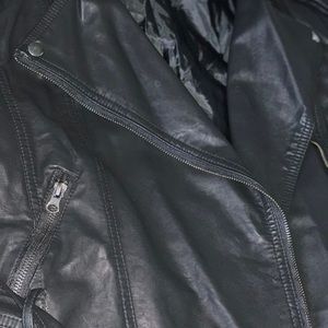 Faux leather jacket , so cute with belt ! Zips up , pockets, zipper details on sleeves. Love this! Wore it twice! Excellent condition !!! Size medium.