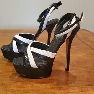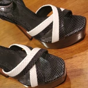 Black and white snake print leather heels by Alice and olivia. Shoes are in good condition with light wear. 11/2" platform with 5" heel.