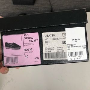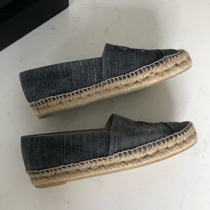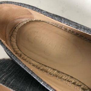 100% authentic Chanel espadrilles. Striped grey suede with CC logo on the front. No marks on the suede - these are in excellent condition. Only worn a few times. First photo is of me wearing them. Come with box but no dust bag. Box has some wear to it. Size 40.
