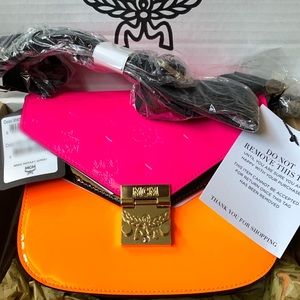 Whether on your shoulder or clutched in hand, this hot pink glossy patent leather bag adds MCM flair to your look.