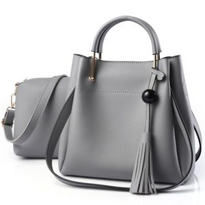 Each Set is made Of 1 Tote and 1 Small Crossbody Purse. Tote has a tassel, long strap, top handle, and Studs on bottom.