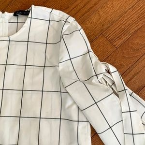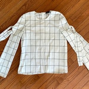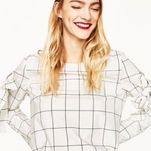 Zara Woman windowpane checkered top. Tie bow sleeves on the upper arm. Long sleeve.